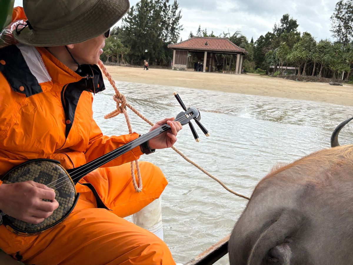 水牛さんに乗り 島唄を聞きながら