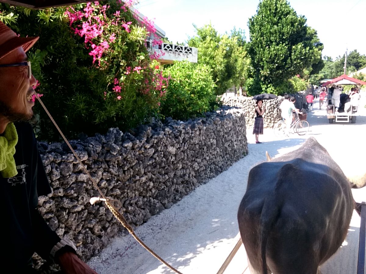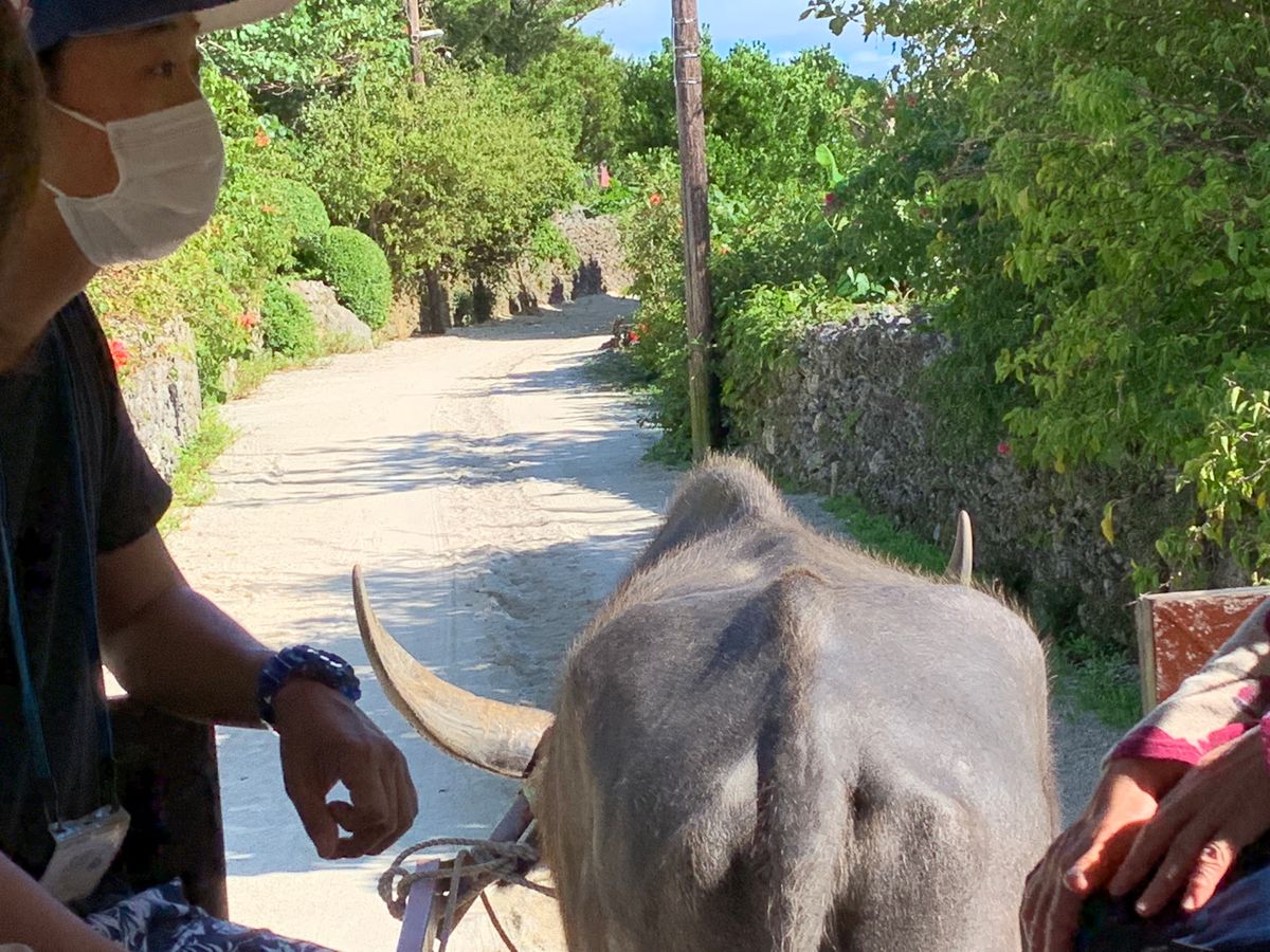 竹富島での水牛車を選択しました。水牛車に乗っている間は、操縦士さんが水牛や竹富島に関する豆知識を披露してくれたり、竹富島伝統の唄を歌ってくださったりと、丁寧な接客でした。
