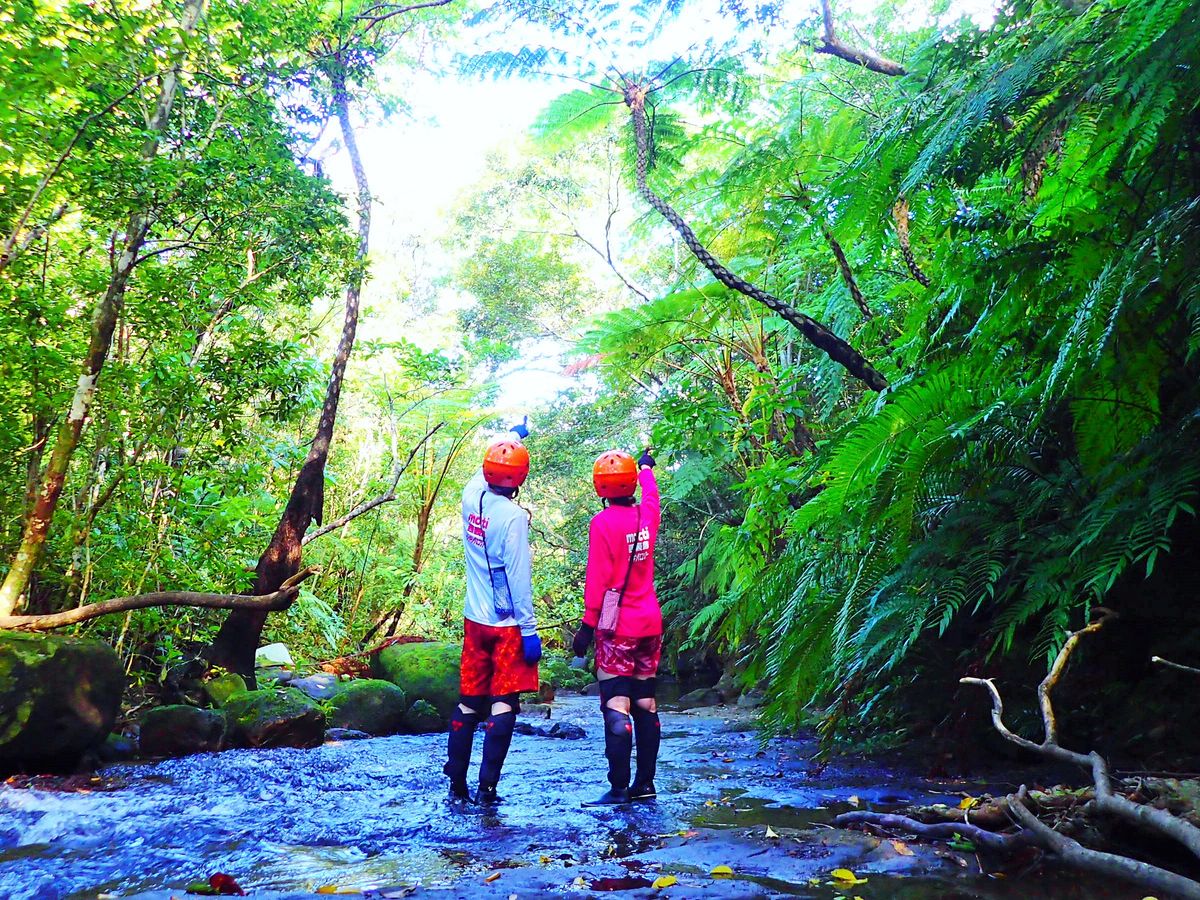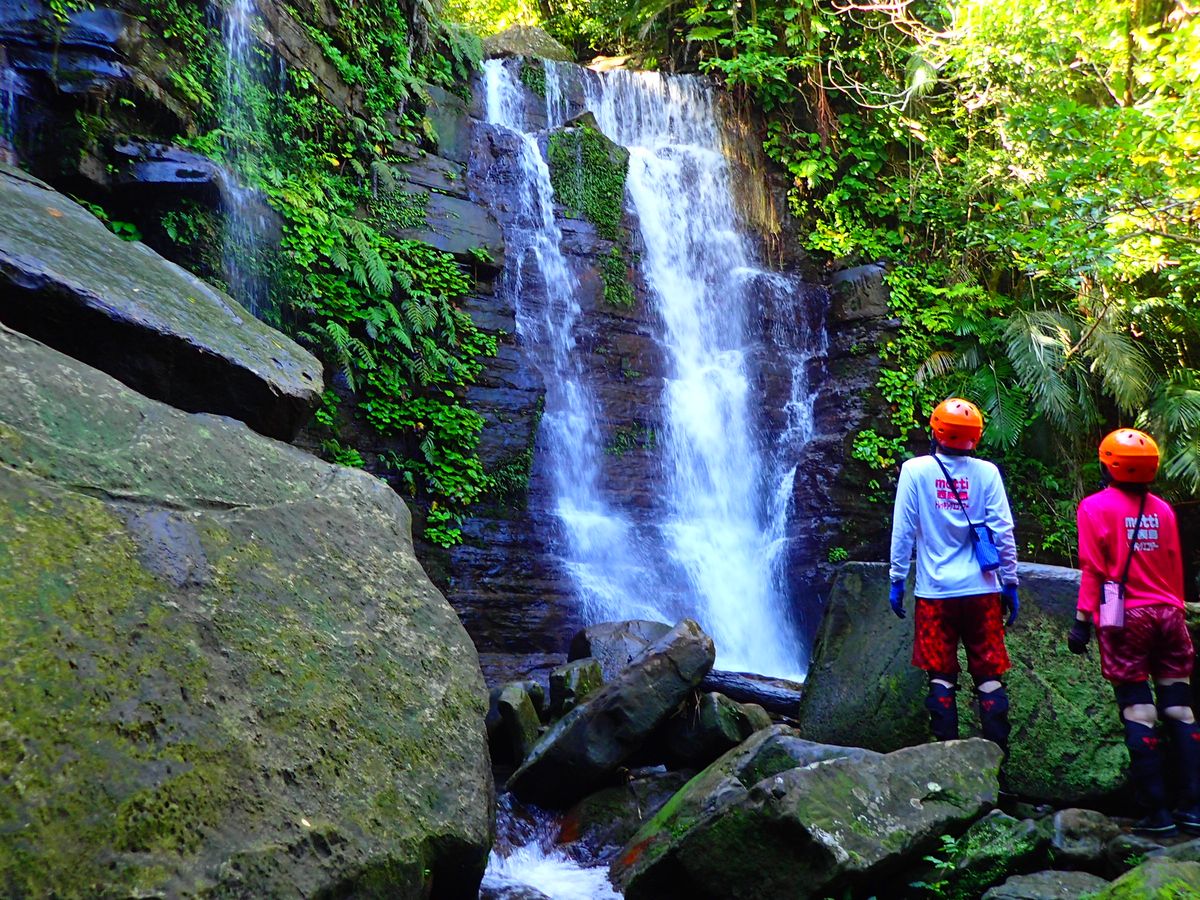 空気が一段と美味しく、虫や鳥の声を聞きながら癒され、時には川の中を歩き、日本最大のシダ植物であるヒカゲヘゴや世界最大のマメ科の植物モダマを観察したり… また、ゴール地点のゲータの滝は圧巻でした!地層が面白い。ただ、水が冷たくて滝行はできませんでした(主人はやってましたがw)。もっと温かければ滝壺で遊べたのにな~。
