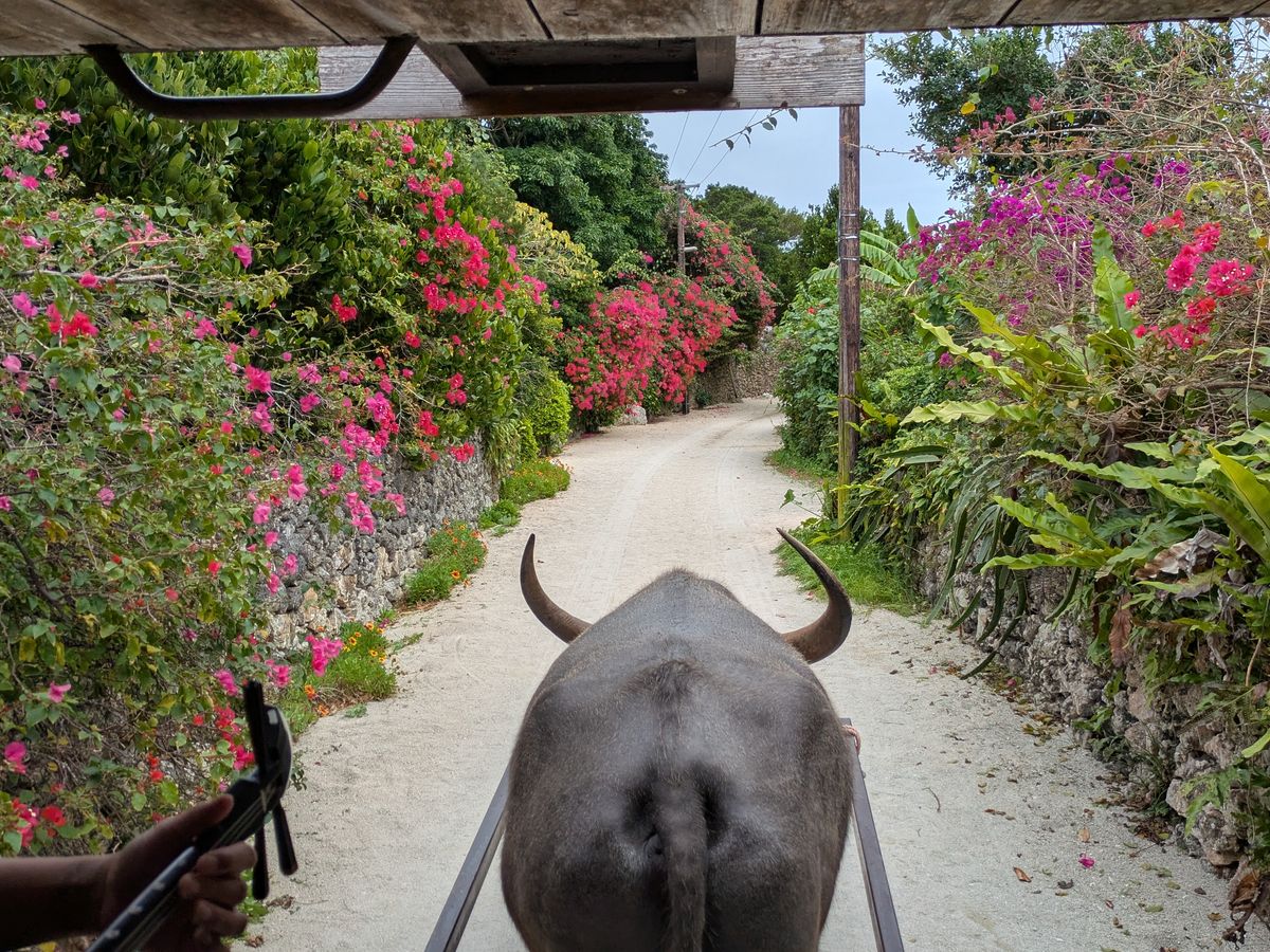 有名な牛車は由布島と竹富の両方で乗りましたが、島は浅瀬の海を潮風感じながら渡り、竹富では昔ながらの街並みをゆったりと巡り、また趣が違って両方良かった‼︎