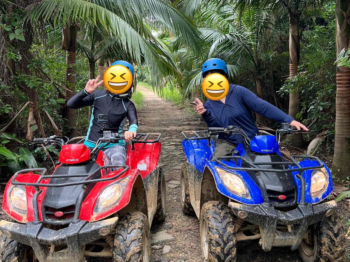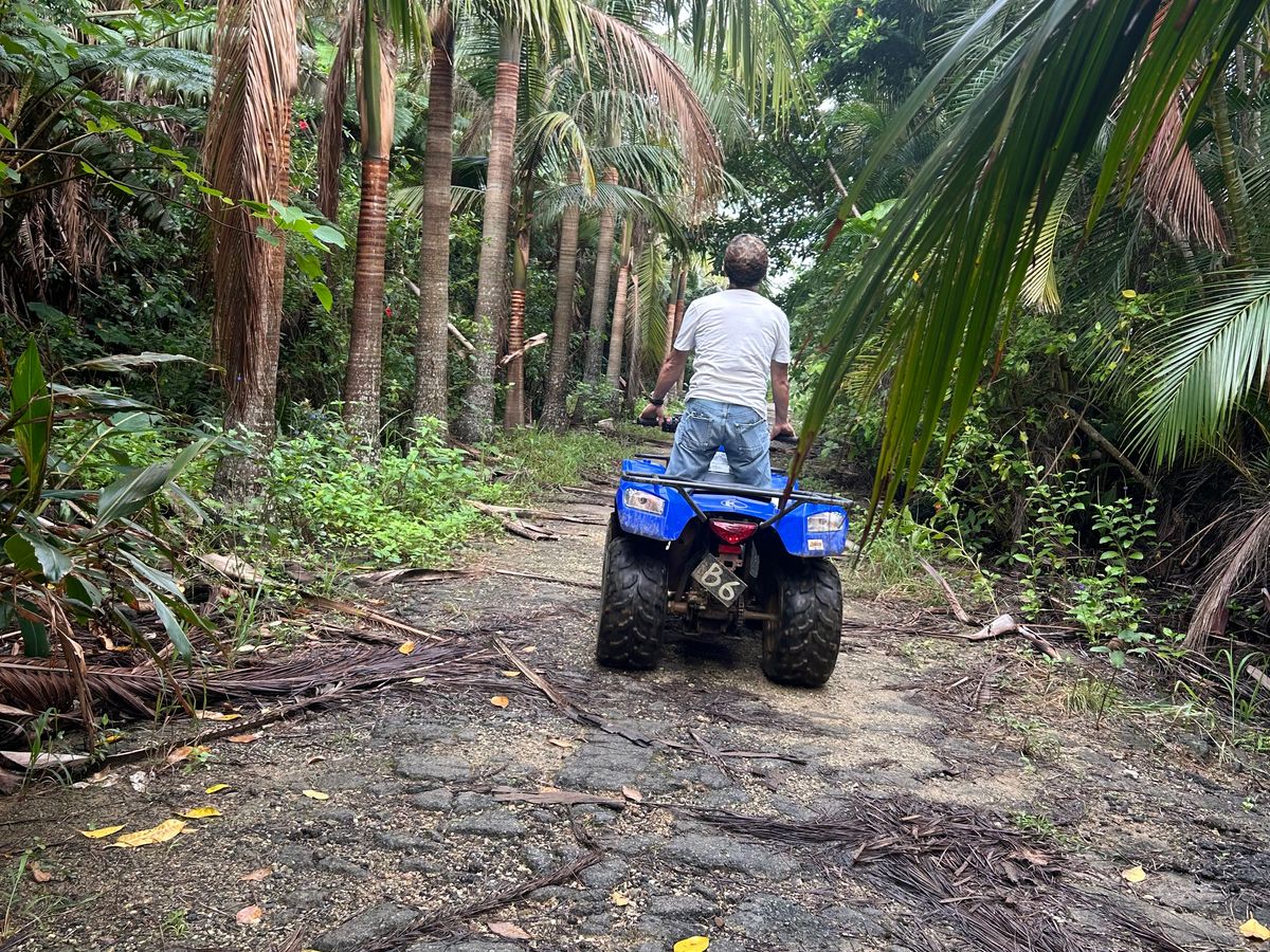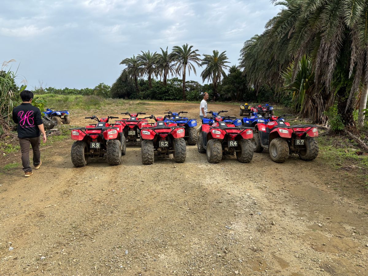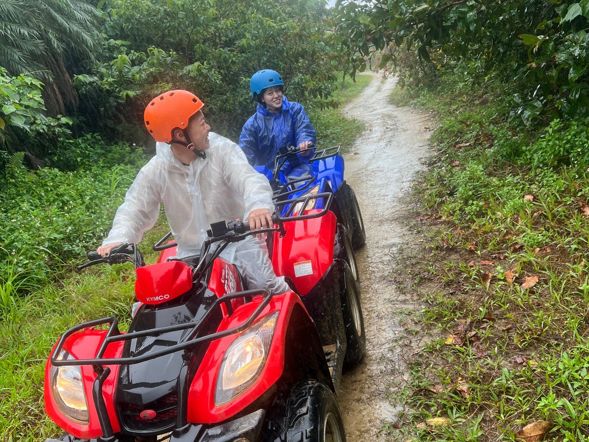 バギーは運転方法をレクチャーしてもらい、少し慣らし運転しながら練習した後は小グループに分かれていざ出発‼︎農園⁈のうっそうとした南国の植物が生い茂っているでこぼこな山道をガイドさんの後について滑走。途中植物や動物の色々な説明も交えてくれて為にもなった。慣れて来たらブンブン飛ばしてめちゃ気持ち良かった。ちょっとしたジャングル探検気分味わえて楽しかったです。