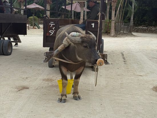 由布島までは水牛車で移動。水牛車に乗る時間ももちろん楽しかったのですが、僕らをおろした水牛車に乗って島に戻る案内人の方が三線を引きながら戻る姿が印象的でした。パフォーマンスではない自然な姿に人と水牛との文化と歴史を感じる時間でした。