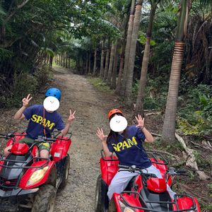 曇り空ではありましたが、バギーも水牛車もとても楽しく体験させていただきました。バギーは初心者でしたが、丁寧にレクチャーしていただき、ガイドの方が2名同行してくださったおかげで、安心して楽しむことができました。雨模様でしたが、長靴やレインコートを無料で貸していただけたため、服が汚れる心配もなく快適でした。コースには南国らしい植物や果物が多く、自然の雰囲気を十分に味わえたのも印象的でした。写真も撮影していただき、とても良い思い出になりました。30分があっという間でしたので、次回はぜひ1時間コースに参加したいと思います。
