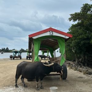 初めての竹富島で絶対に体験したかった水牛車♪雨が降ってましたが全然気にならないほど赤煉瓦の家並みや水牛くん達が最高の癒しをくれました!担当の方の説明や民謡も素晴らしかったです♡また、来れた時には絶対に体験したいです。自転車を借りて西桟橋とコンドイビーチに行きました。まず西桟橋に感動して次にコンドイビーチに着いたら晴れ間も見えて天国のようなビーチに感動しっぱなしでした。時間がなくてカイジ浜にいけなかったので次回絶対に行きたいです!