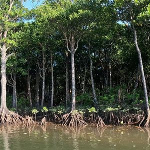 生憎の天気でしたが、マングローブ遊覧の時には雨も止み、干潮時であったため、根の方が良く見えて、鳥も寄ってきていました。遊覧も水牛車もガイドさんの面白い話も聞けて大変楽しい時間でした。ちょうどエコ検定試験を受けた後だったので、尚更わかりやすかったです。