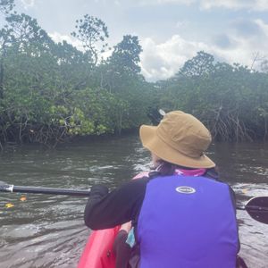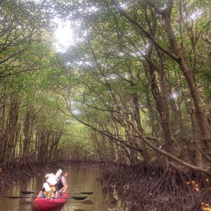 当日はあいにくの雨でしたが、マングローブの森をカヤックで入り、雨がよりジャングル感を感じられました。