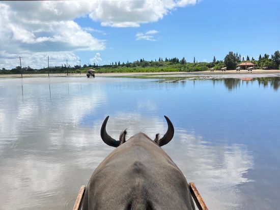 由布島へ水牛車にのって三線の音を聴きながらゆっくり移動する時間はとても心地よかったです。島へ渡る時間はその時の水牛さん次第(笑)
