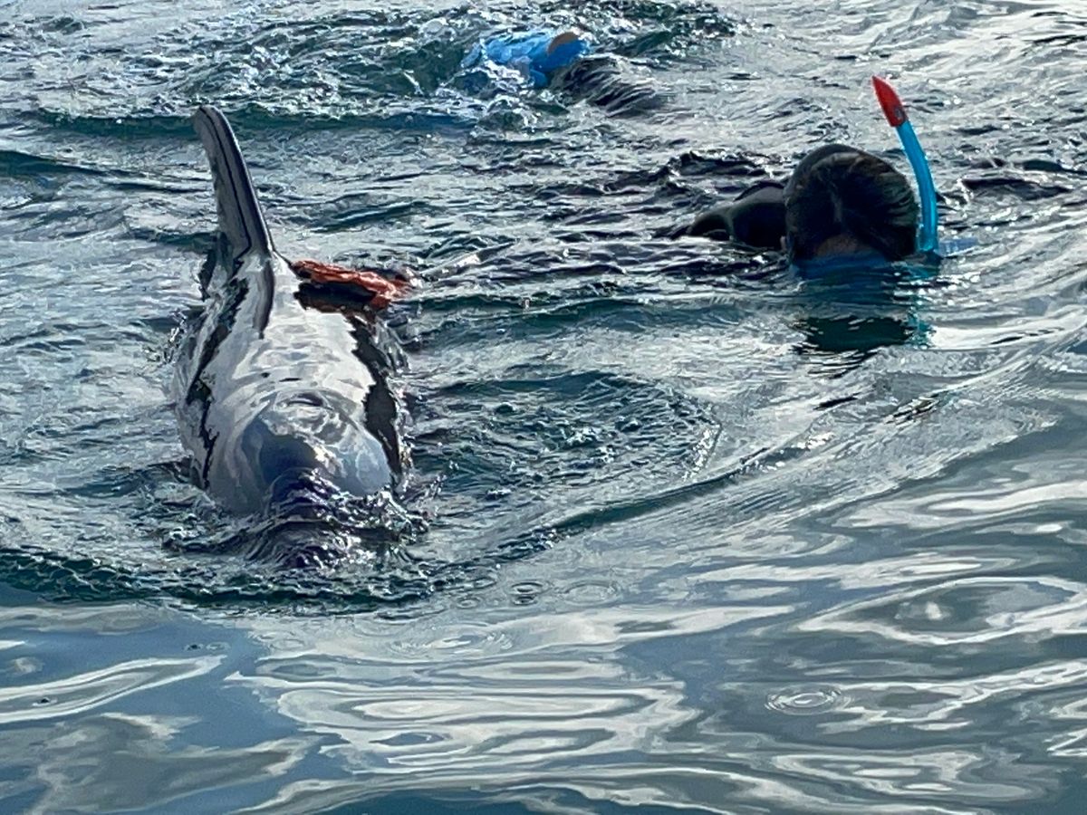 イルカに触ったことはあったけど、捕まって泳いだことがなく、申し込みました。