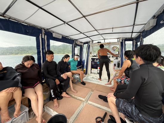 We were picked up at Art Hotel Ishigaki at 8:10am and moved to Ishigaki Port. After receiving instructions and an explanation of the schedule, we split into two boats for skin diving and scuba diving🤿 and headed to the first manta point. After about 50 minutes, we arrived off the coast of Kabira Bay and immediately encountered a medium-sized manta ray! We were lucky because the captain hadn't seen one in the last two weeks😊