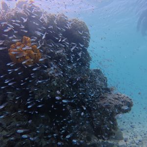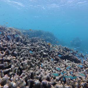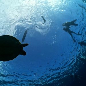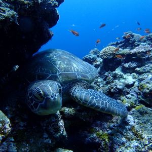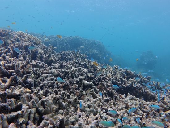 ウミガメを探している間などは素潜りをしてサンゴや綺麗なお魚をみて楽しむこともできます。