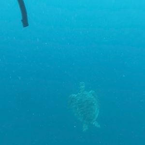 This video was taken at the second point, the sea turtle search area. We encountered two sea turtles and while we were waiting, one of them came to the surface to breathe, and we were able to film it right in front of us!