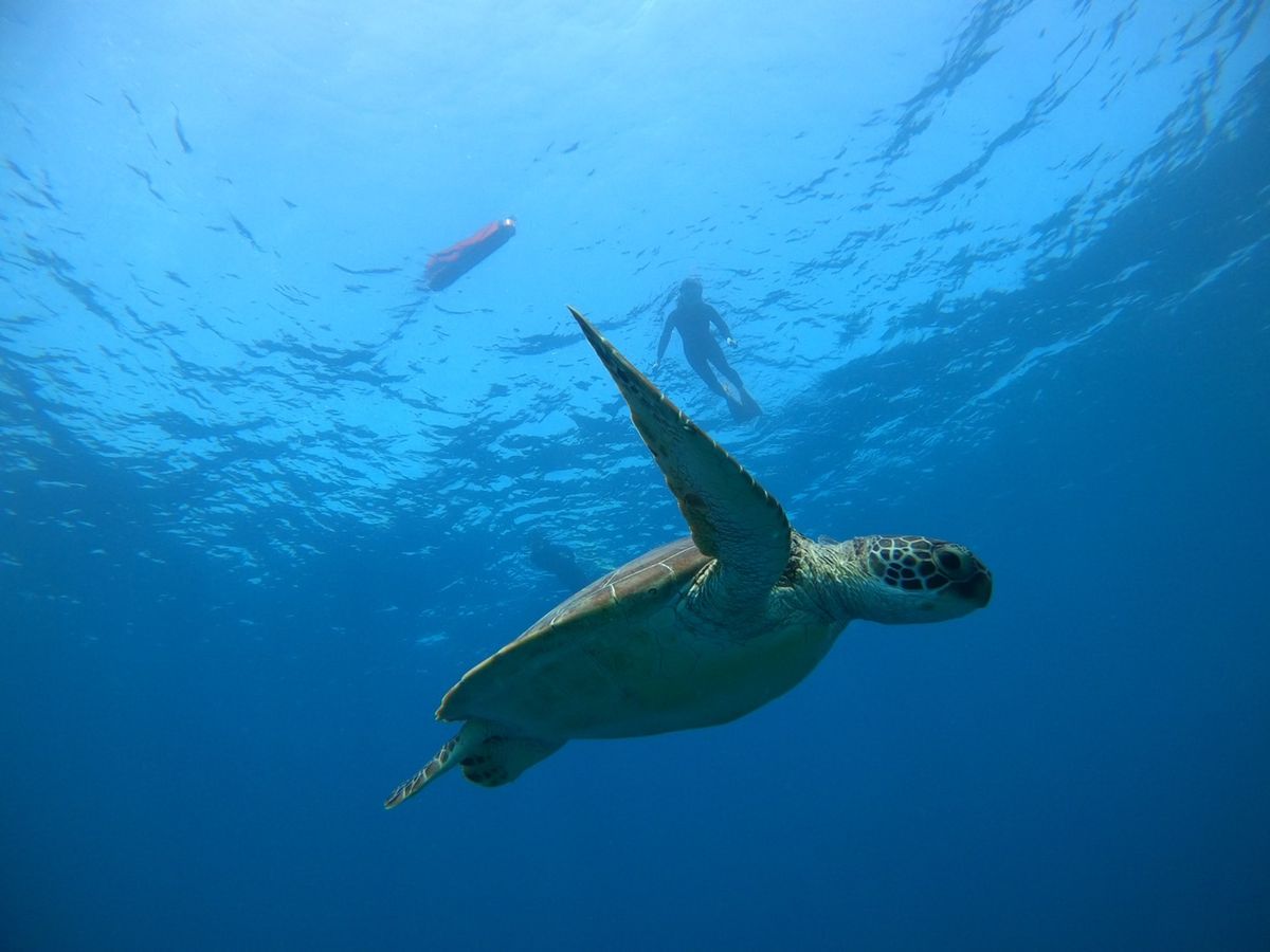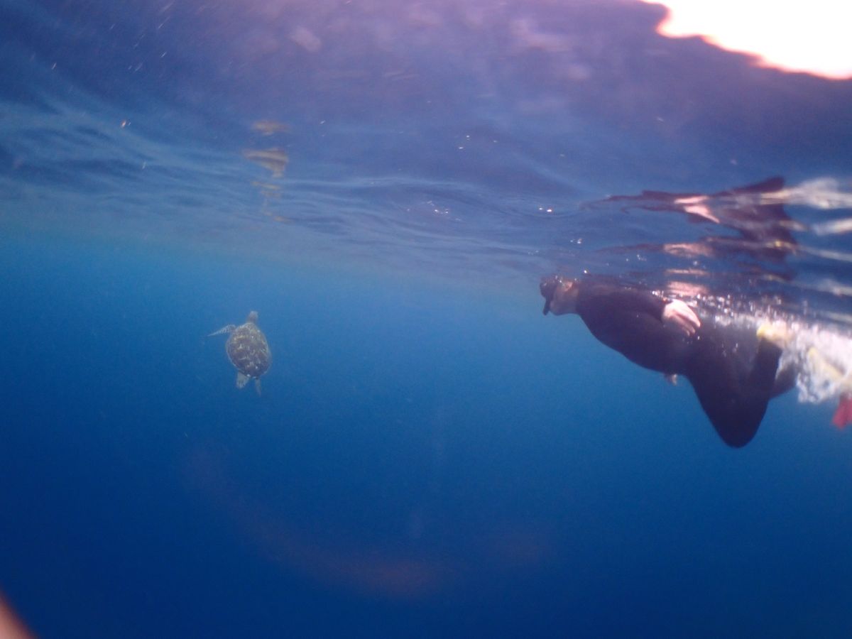 ウミガメと一緒に泳げたのは日頃の行いが良いからですよ!