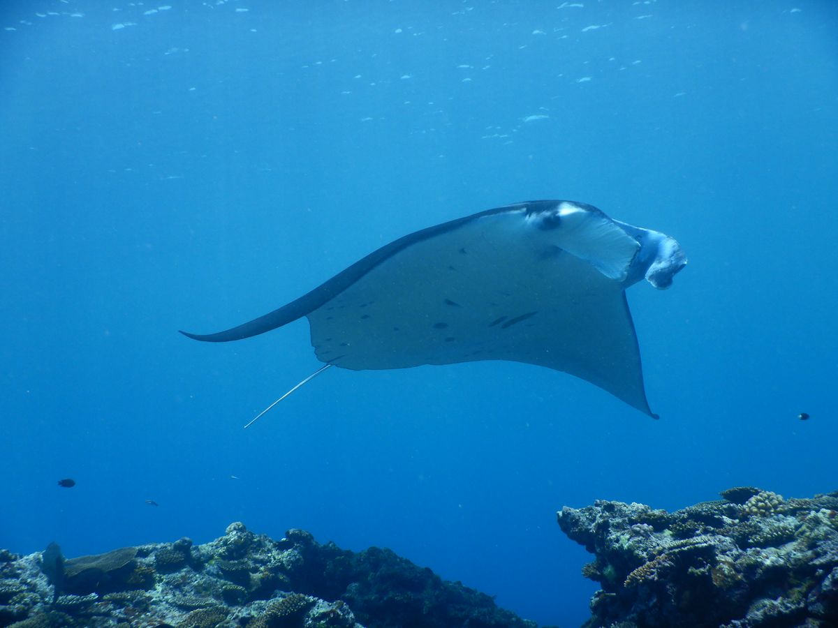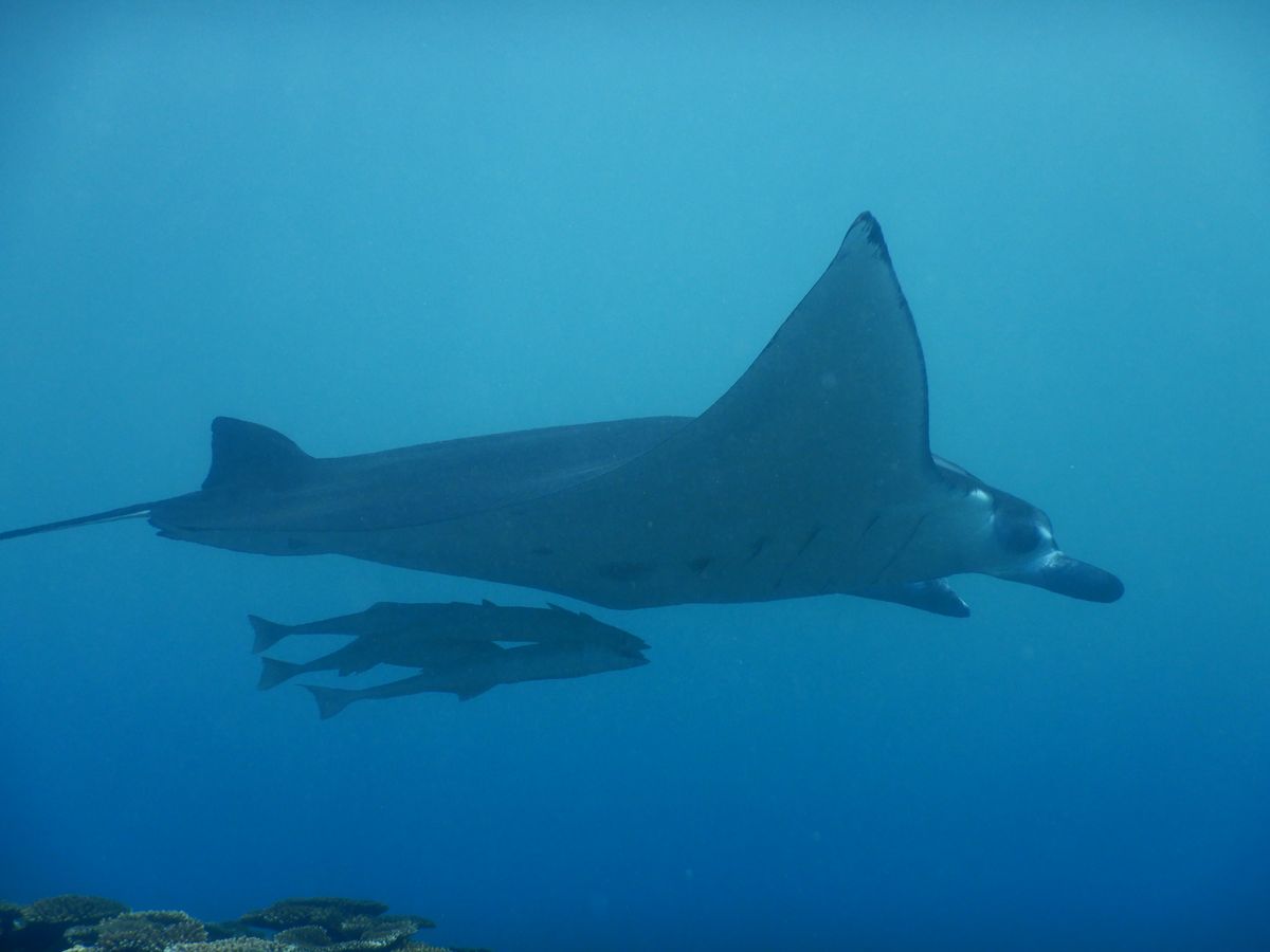 マンタに会えるかは運次第ということで、期待しすぎず潜って数分、、、マンタいました!!しかも三体も!少し流れがあったけど、ずっと周りをぐるぐるしてくれるマンタさんは本当に可愛かった、、まるで鳥のようでした。