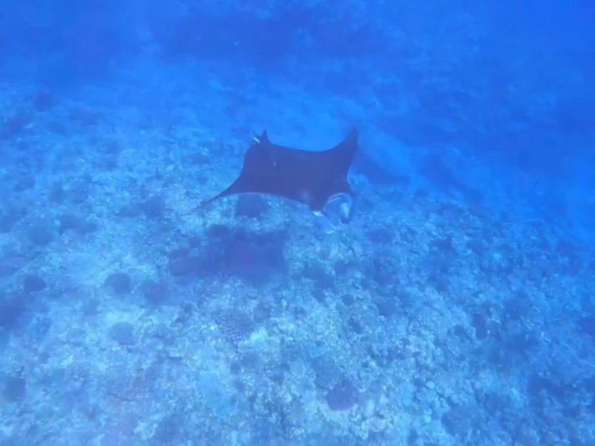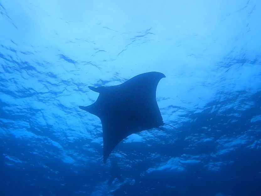 マンタは泳ぎが速く、一瞬で通りすぎていったため写真は見切れてしまいましたが遭遇できて本当にラッキーでした!
