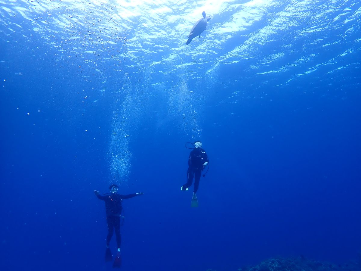 ②初めてのダイビングでした。上手く泳げるか、呼吸はしっかりできるのか不安でしたが、1から丁寧に説明していただきました。マンタは見れなかったものの、ウミガメ三匹と遭遇して一緒に泳ぐことができ、とても感動しました。
