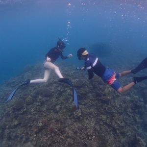 スキンダイビングの1日コースで参加しました。初めてのスキンダイビングで、シュノーケリングもまともにやったことがなかった私たちは楽しみなドキドキと、ちょっと怖いドキドキが混じった複雑な感情でスタートしましたが、終わった後の感想は参加してよかった!の一言に尽きます。本当に楽しかったです!