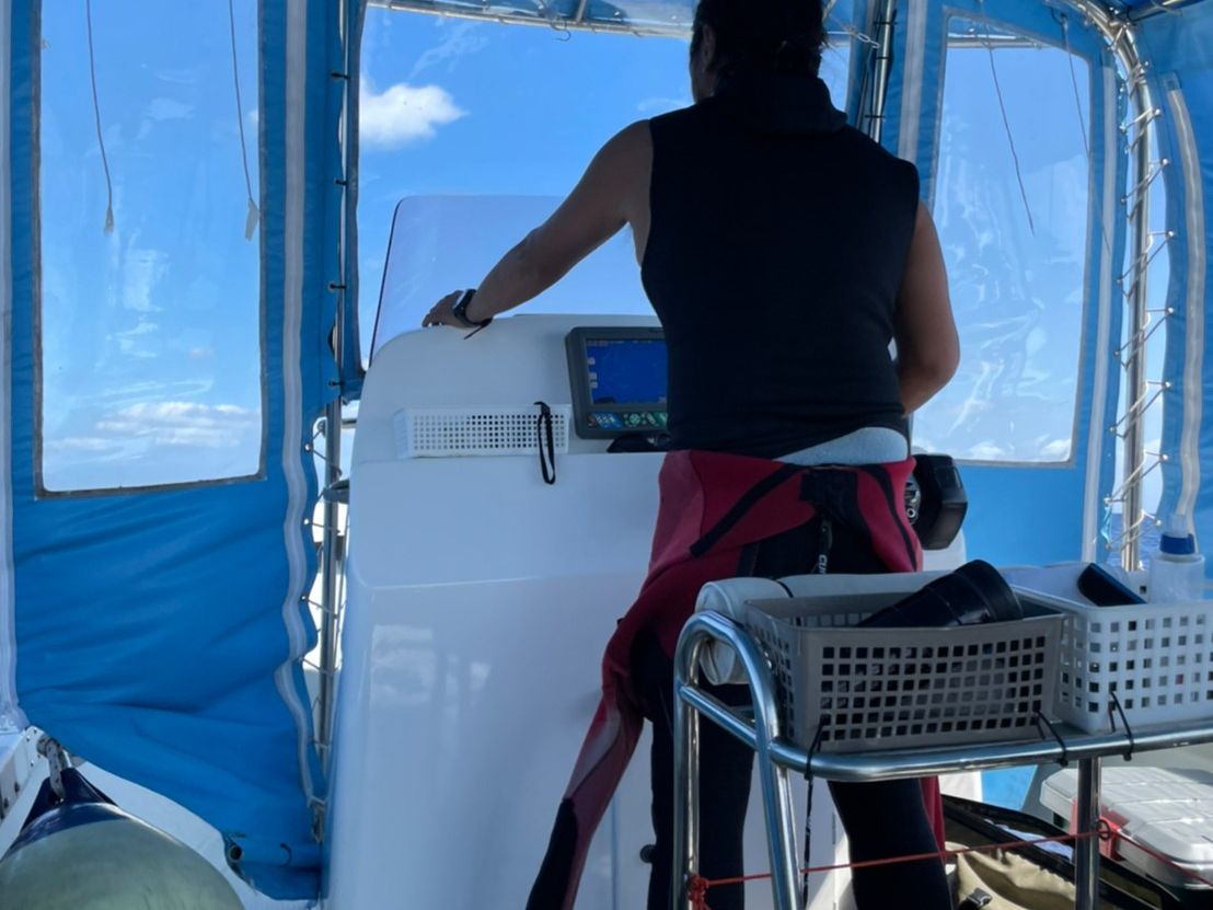 夫婦で体験ダイビングに参加しました。主人はダイビングは初めてだったので、船上でインストラクターの方から講習。