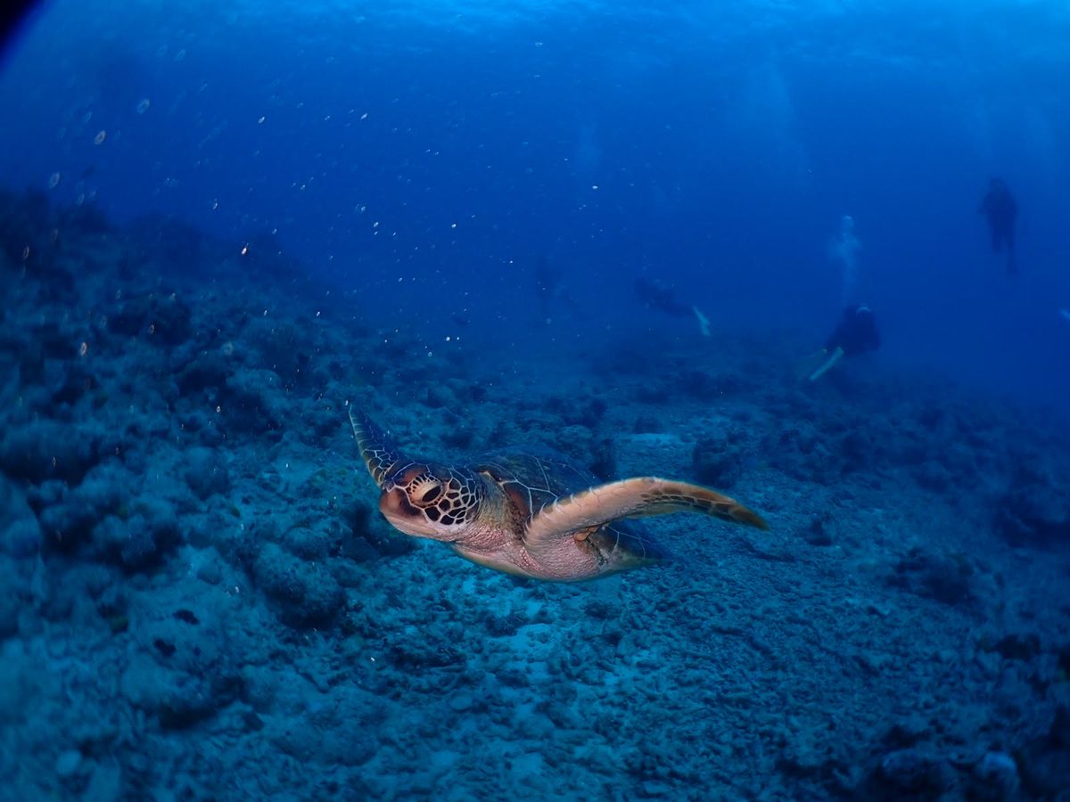 今回はマンタには遭遇出来ませんでしたが、パートナーは近くを泳ぐ海亀に