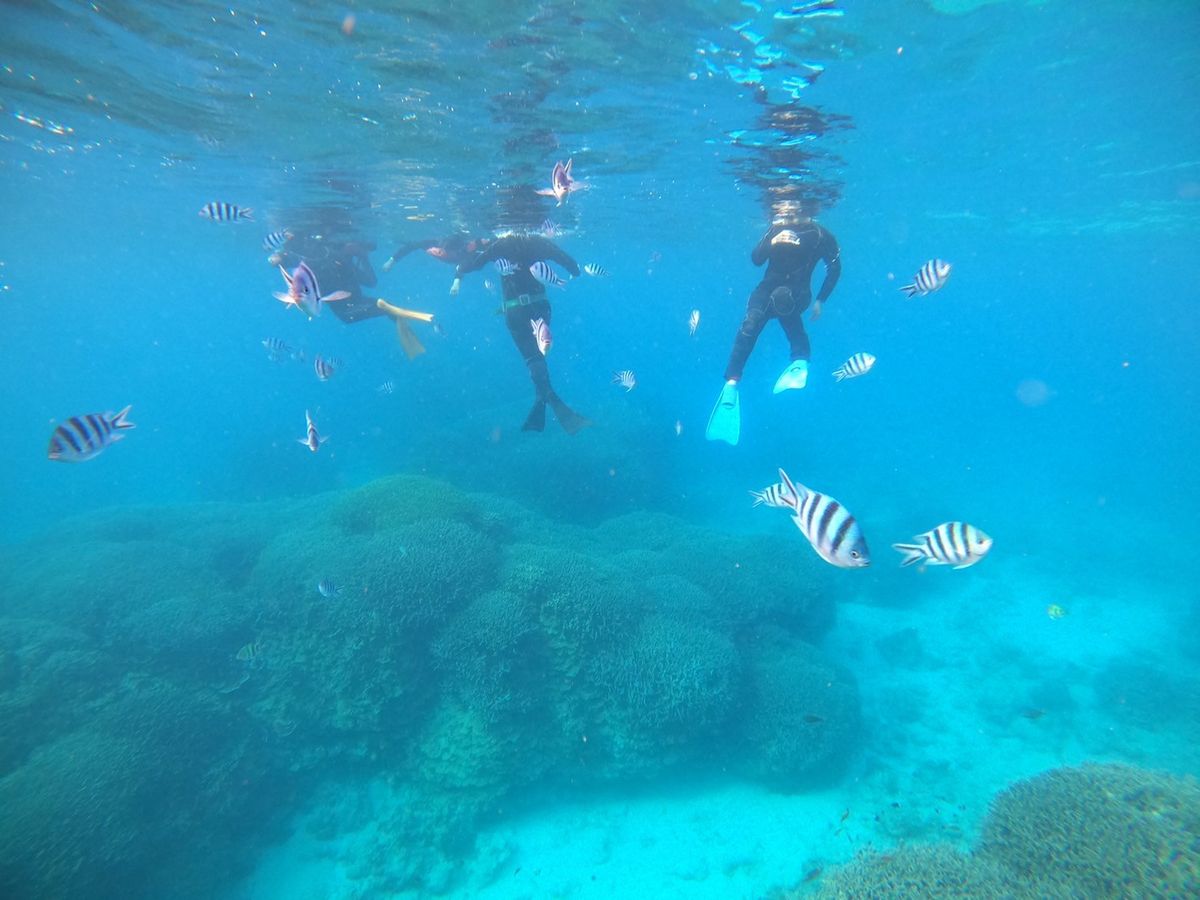 そこそこ深い海での初シュノーケリング&スキンダイビングでした。透明度が高く、様々な海の生態系や地形が間近で感じられてとても有意義な時間でした!
