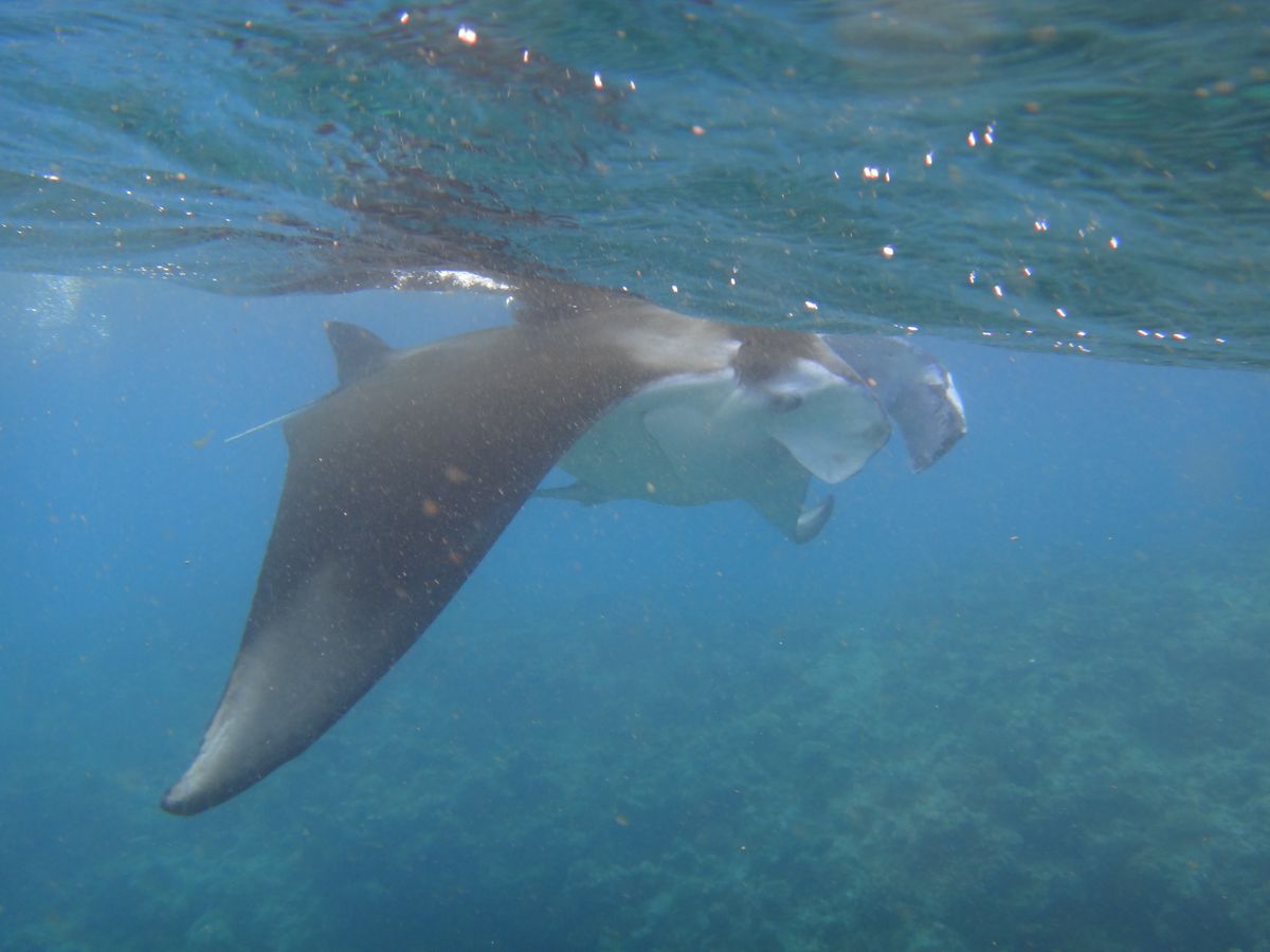 朝早い時間帯だったので、周りのツアー会社の船も少なく、マンタが見れるポイントは貸切状態でした。5匹以上は水面近くを周遊していて、シュノーケルでとても近くを泳ぐことができました。