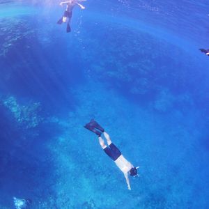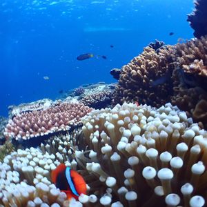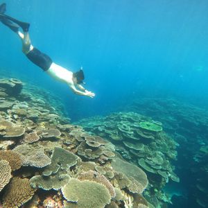 今回は石垣島の海を満喫したいということでこのツアーに申し込みました。流れはダイビング→幻の島→シュノーケリングです。まずダイビングですが、とても丁寧に見ていただけました。慣れない口呼吸で軽くパニックになっていたところ適切な対処方法を教えていただき、無事潜水できました。海は透き通っていて、カラフルなお魚も沢山いました。また、ウミガメに2匹も遭遇し、一緒に泳ぐことまでできました!幻の島も辺り一面エメラルドブルーのような色合いでとても綺麗でした。またそこでは温かい昼食を作ってくださり、冷えた体にはちょうど良かったです。台風の影響でマンタポイントには行けませんでしたが、珊瑚が綺麗なところを2箇所も回ってくださり、素潜り体験もできました。シュノーケリングで潜れるツアーはなかなか無いのでとても楽しかったです。ガイドのお兄さん方3名はとても優しく、安心感もあって全てお任せすることができました。マンタリベンジのためにまたツアーに参加したいと思います。ありがとうございました!!