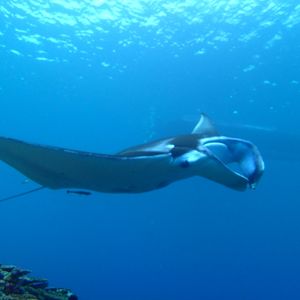 次のポイントでは潜って10分くらいでマンタに遭遇!!