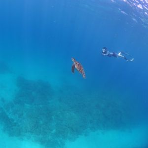 最初はウミガメのポイントに行き、そこでは2~3匹のウミガメに出会えました。