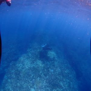 今回追加ダイビングも合わせて2ダイブ体験させて頂きました。妻と参加したのですが、妻はライセンスをもっておりましたが私がもっておらず体験にしました。集合してすぐに乗船、最初は体験ということで浅瀬でダイビングしました。インストラクターの方は各組に一人ついてくださり丁寧に説明して頂けました。この深さでも耳抜きの難しさに驚きました(^_^;)