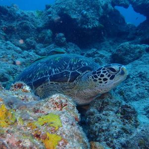 当日、海が荒れていたためマンタのポイントには行けませんでしたが、運良くウミガメは目の前まで近づいて見ることが出来ました。時間いっぱいまでポイントを周って頂き満足度は非常に高いです。