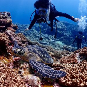 ダイビングは初めてで、少し不安もありましたが、楽しく丁寧に教えてくださり安心して潜ることができました。海の中は本当に今まで見たことないほど綺麗で感動しました!!魚や海の中の地形、珊瑚などすごく近くで見れて、大満足で、すっかりダイビングの魅力にハマってしまいました!!