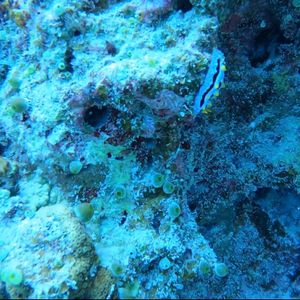 体験ダイビングは、初でしたがまずは丁寧にお勉強してから海での練習を行いました。そしてサンゴ礁でのダイビングでは沢山の魚に会えました。