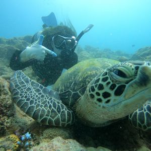 ダイビングとシュノーケリング2回をたっぷり満喫できました!久しぶりの体験ダイビングでしたが、非常に丁寧に教えてくれたので、全く怖くなかったです!マンタに会えなかったのは残念でしたが、寝ているウミガメやウミヘビ、クマノミなどいろいら見られて楽しかったです!今回はシュノーケリングの方が多めでしたが、今度はダイビングライセンスを取ってダイビングメインで参加しても良いかなと思いました!