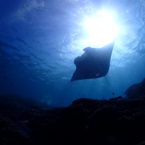 その日によって見れるか見れないかあるかと思いますが、運よくマンタに遭遇です。神々しい姿は、優雅であり映画の宇宙船のお手本なのかと思うような