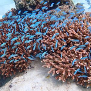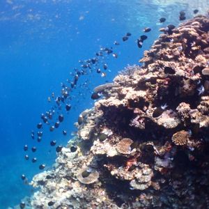 今回は夫婦でツアーに参加しました。もう1名の参加者と、スタッフ3名の6名でした。スタッフの方が盛り上げてくださり、終始楽しい雰囲気で過ごすことができました。シュノーケリングスポットは3か所、マンタやウミガメは見ることが残念ながら出来ませんでしたが、きれいなサンゴやたくさんの魚、ウミヘビを見れて満足です!