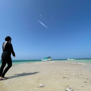 幻の島までは竹富島を横目に少し行った先にポツリ白い砂浜が浮かぶエメラルドグリーンの島です。ザ!沖縄と言う感じでお友達と心奪われ写真をたくさん撮りまくりました。広ーい空、目を奪われるような透明度の高い海最高ですよ。