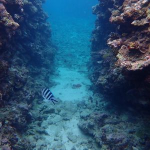 浅場から25mくらい落ち込むポイントで、ウミガメのポイントでもあったようですが、今日はカメはお休みだったようです。曇天だったので、太陽光が海の中に十分に届いておらず、ちょっと残念な結果でした。