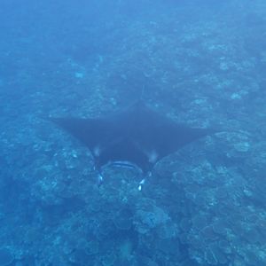 2本目のポイントで海に入ってすぐに大き目のマンタに会うことが出来ました。これを目当てに参加したので、自分は大興奮でした。