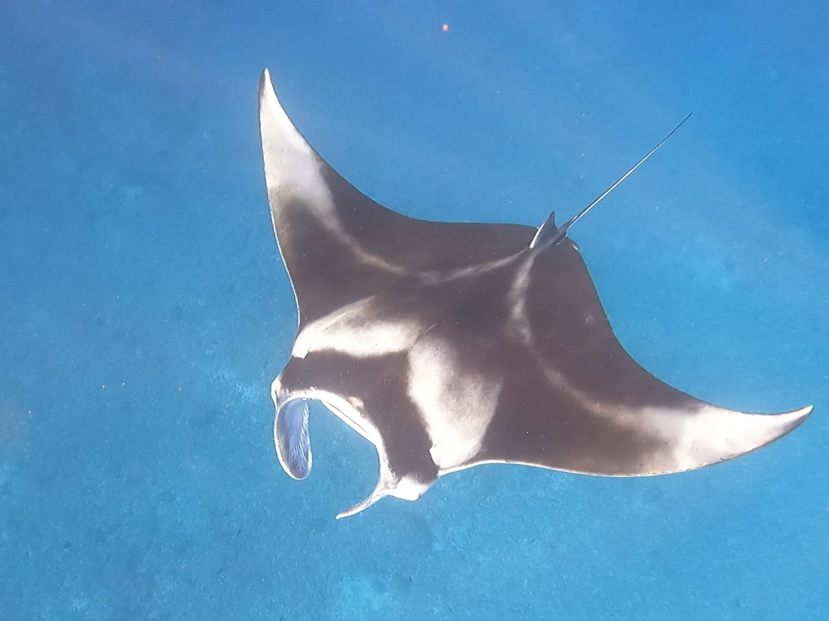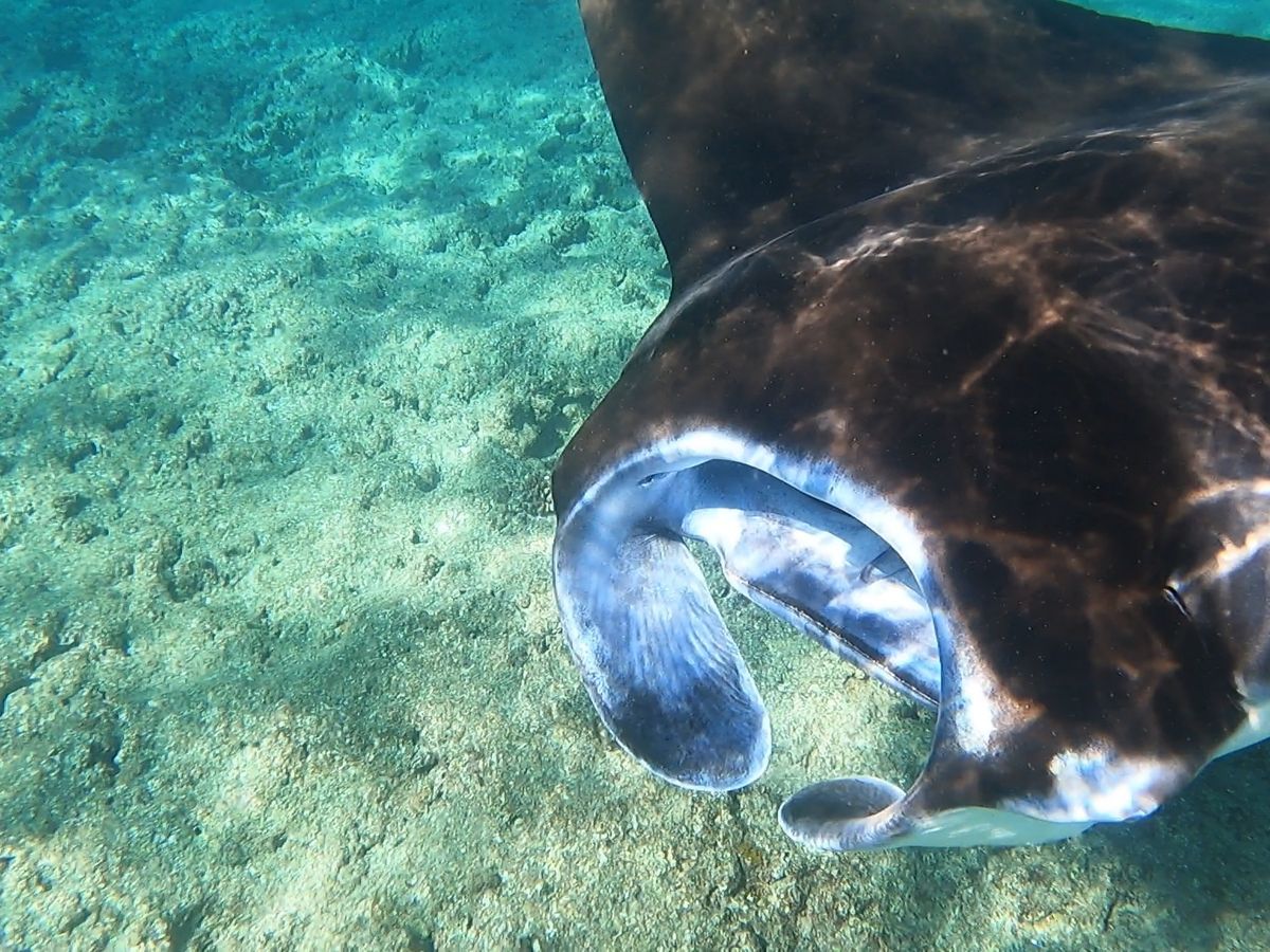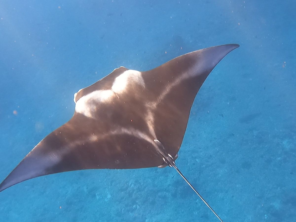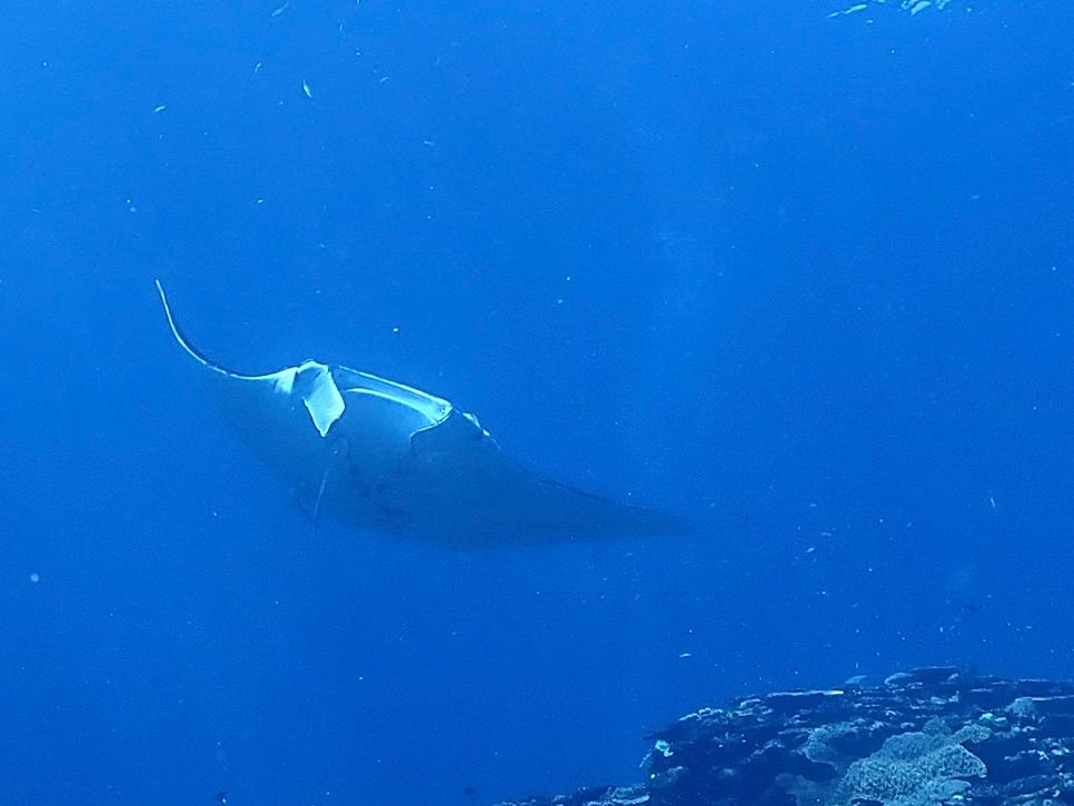 熟練のスタッフさんが絶好のポイントに誘導してくれたため、待機していたら頭上をマンタが2回も通過してくれました。