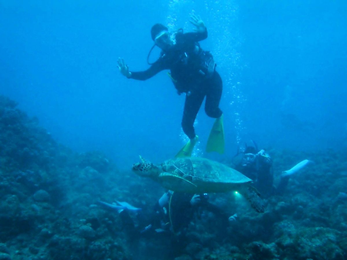 マンタには波の影響でポイントに行けず会えませんでした。残念でしたが、海亀には会えました。他のダイビングツアーと一緒の船でした。