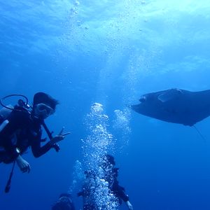 体験ダイビング家族4人で参加しましたが、小学生の子供たちは呼吸がうまくできず断念。夫婦で2回目の本番ダイブ。たくさんのマンタに遭遇!同行されてた常連さんも水中でグルグルまわるマンタはめずらしいとのこと!貴重な体験でした!