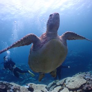 ãããšäžç·ã«ãããŒãã«ä¹ãåããšããã§äœéšããŸãããããã§ããŠãã¬ã¡ã®æ¯ç¶ããéè¿ã§èŠãããšãåºæ¥ãŸããããäºå®éãïŒæ¬ã®ã·ã¥ããŒã±ãªã³ã°ãäœéšãã綺éºãªæµ·ãããããã®éãèŠãããšãåºæ¥ãŸãããç³å£å³¶ã®å€©æ°ã¯ããããå€ããã®ã§éšã§ãæŽãéãåºããšããå€ãããå€å°éšãéã£ãŠãæµ·ã®äžã¯ããŸãå€åããªãã®ã ããããšãŠã綺éºãªãã«ãŒã®æµ·äžãèŠãããšãåºæ¥ãŸããã