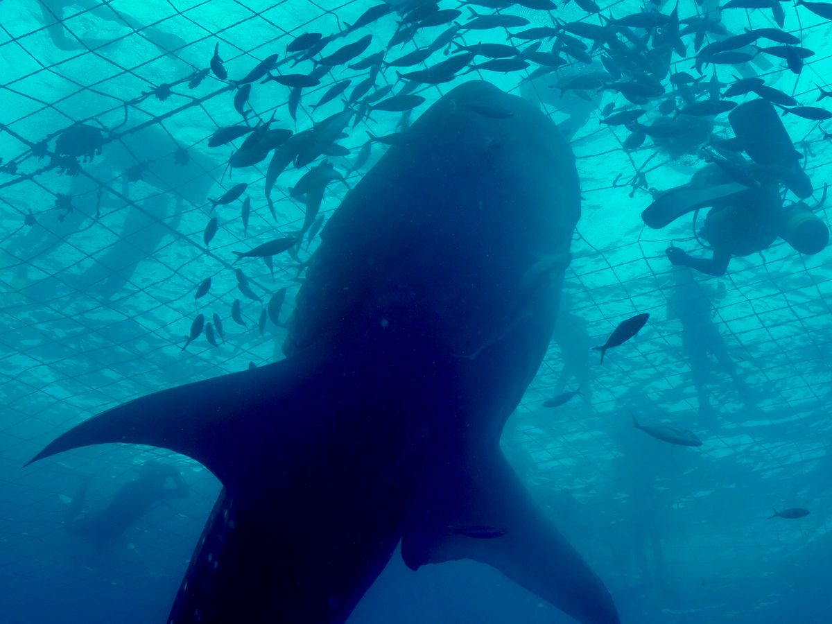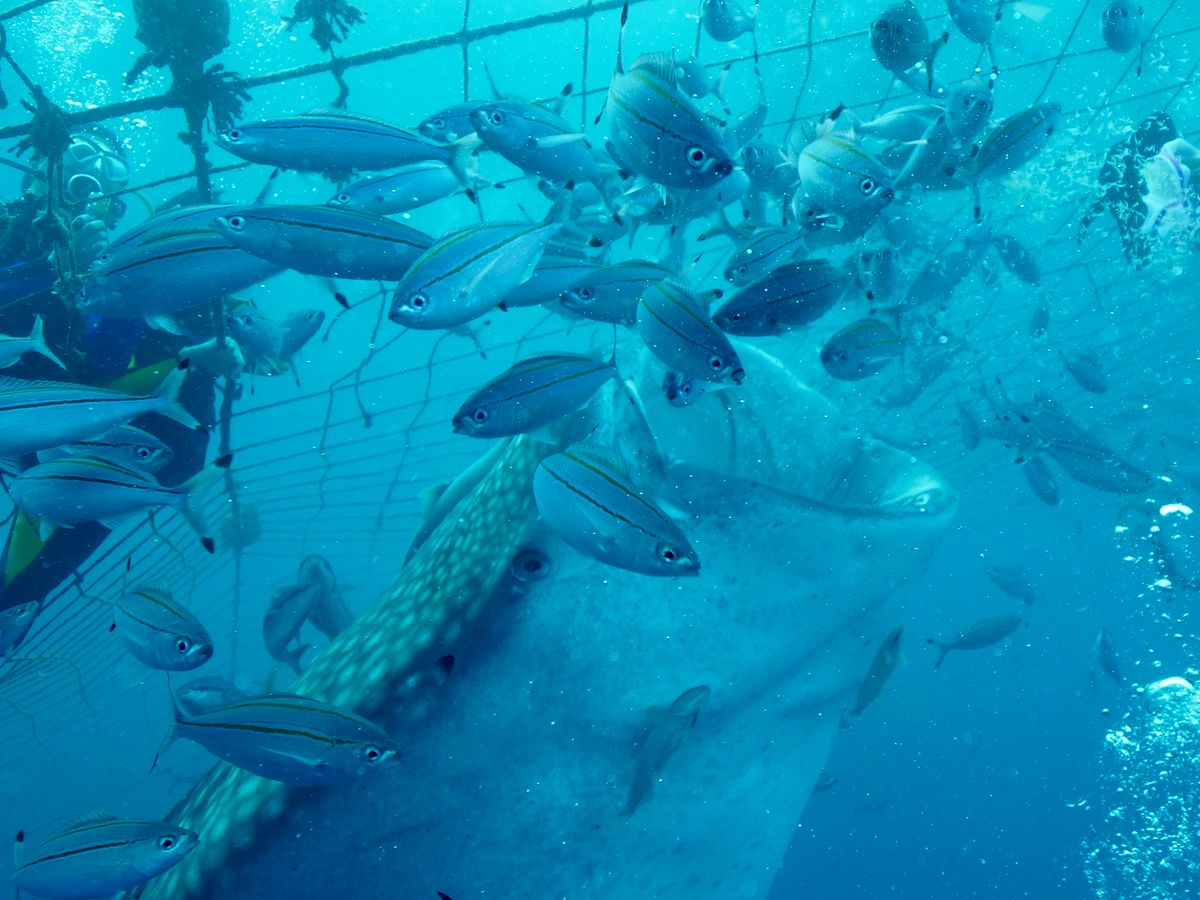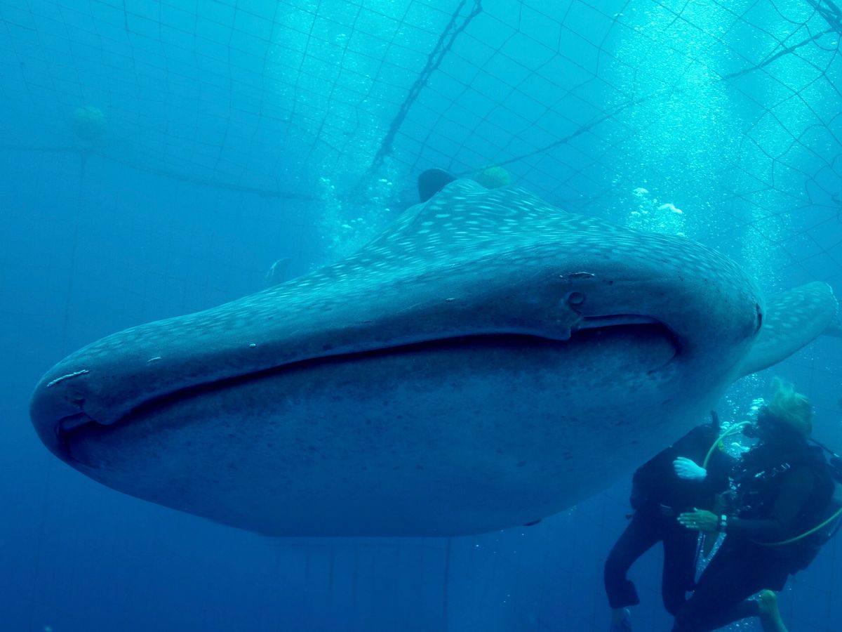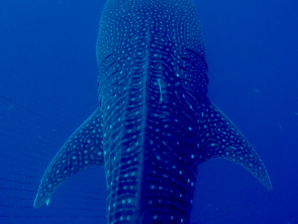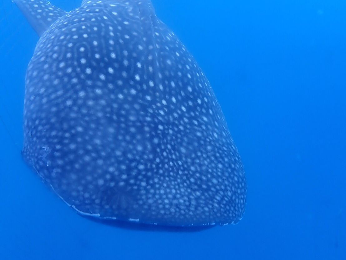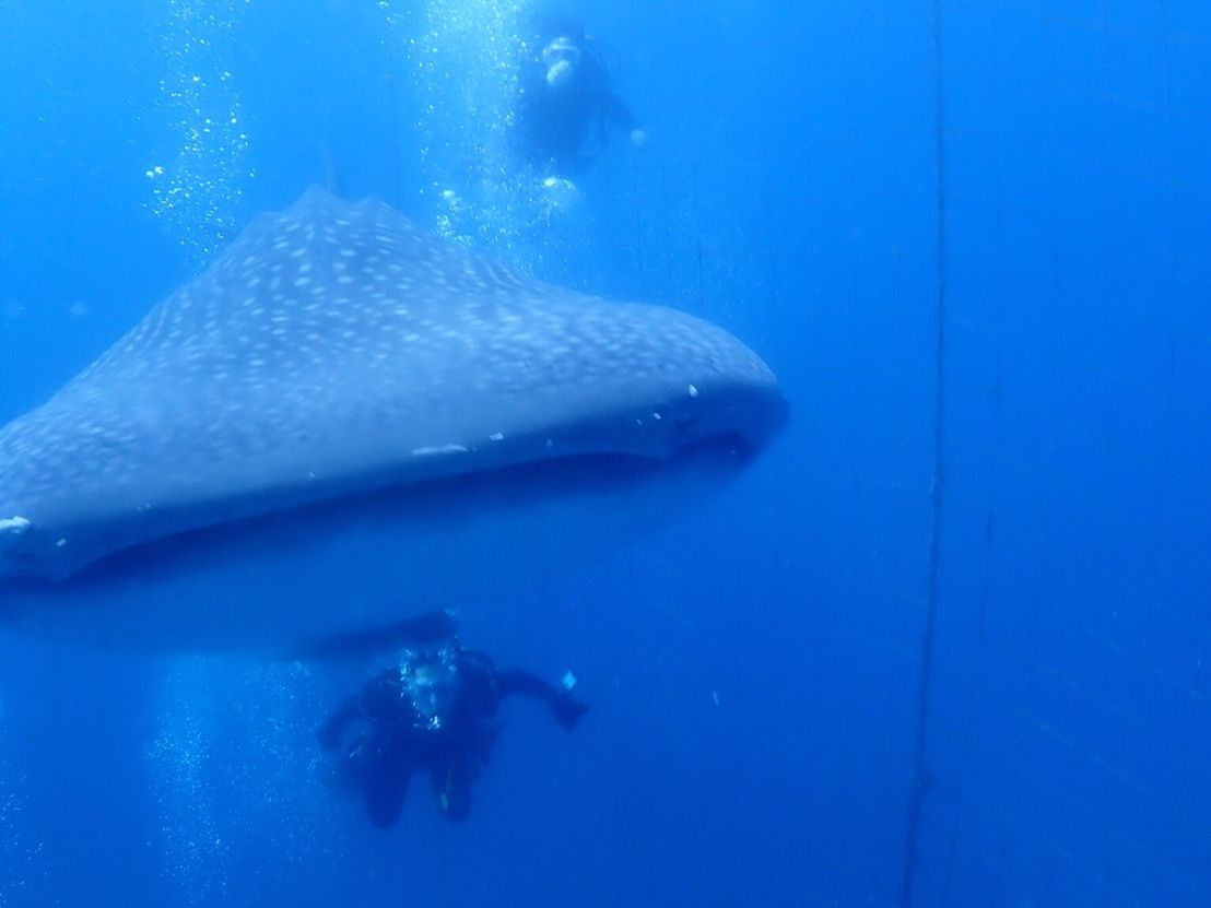 水族館では見れない距離と角度からジンベイザメを見ることができました。ジンベイザメのいるネットの中で20分ほど過ごしましたが、あっという間でした。
