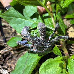 小雨が降ってたので心配でしたが、さすがベテランのガイドさん。経験を活かして当日待ち合わせ後に違う場所へ移動。石の間に1匹目のヤシガニ発見‼︎その後、森林の奥の方にガイドさんが下がり探しに行ってくれて…BIGヤシガニを見つけてきてくれました‼︎
