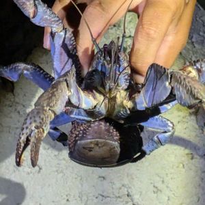 あいにくの曇り空で天気はよくなかったですが、ヤシガニを2匹見つけることができました!