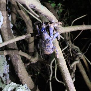 海辺にむかう林道では、天然記念物のムラサキオオヤドカリやハブにカエルなど色々な生物に出会えました。