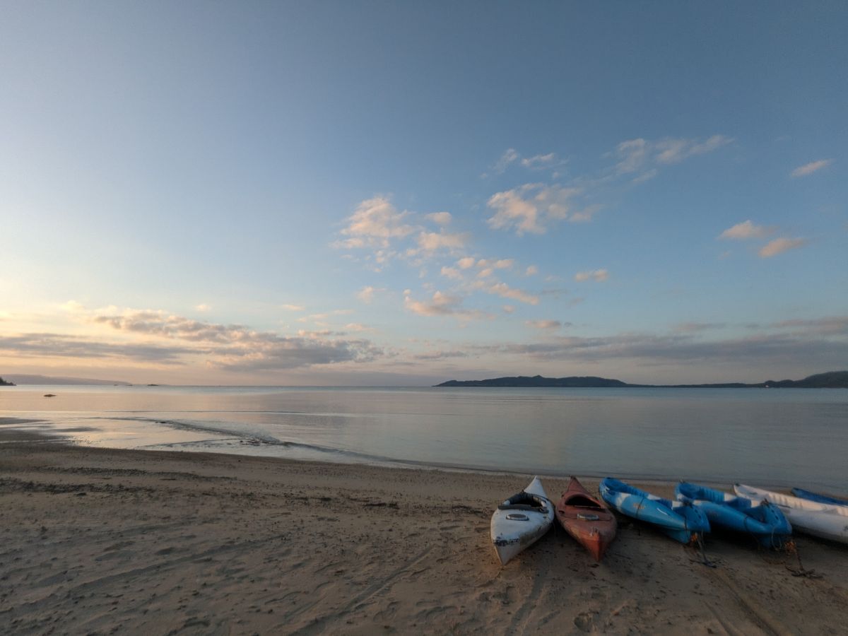 シーカヤック初体験でしたがとても楽しかったです。夕陽からの星空を楽しみに参加しました。当日は曇りで星空は見えなかったけど、夕方の海は綺麗で静かでものすごく癒されました。