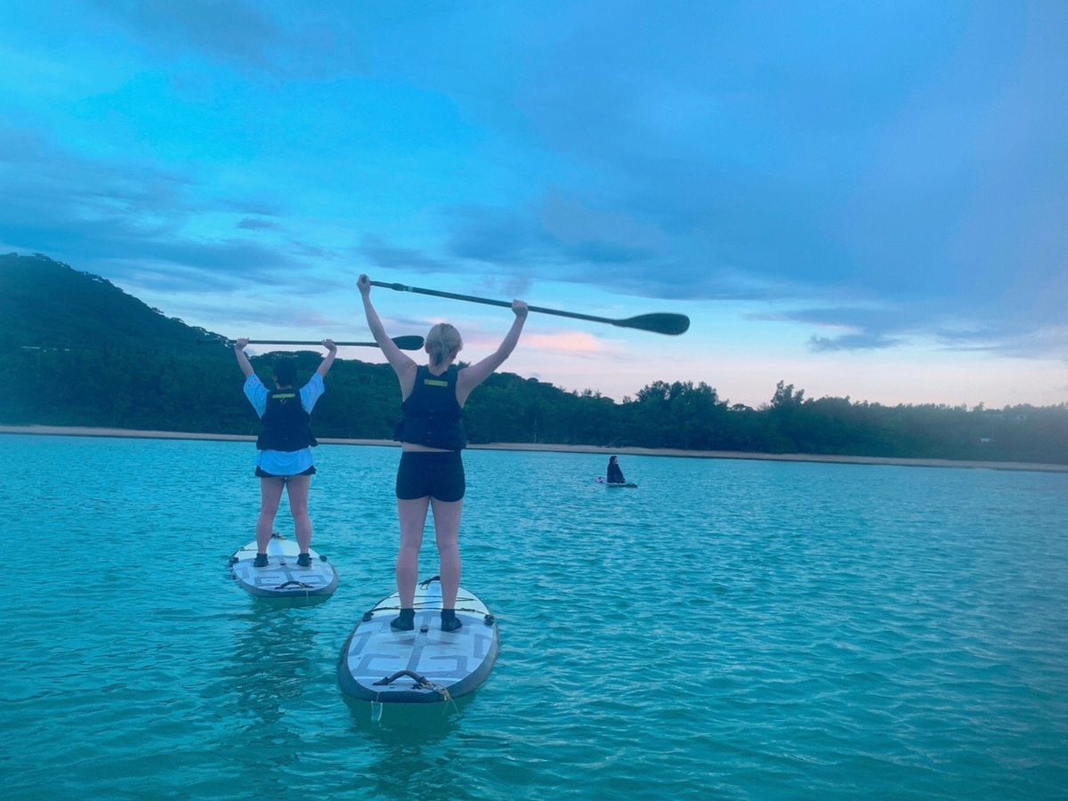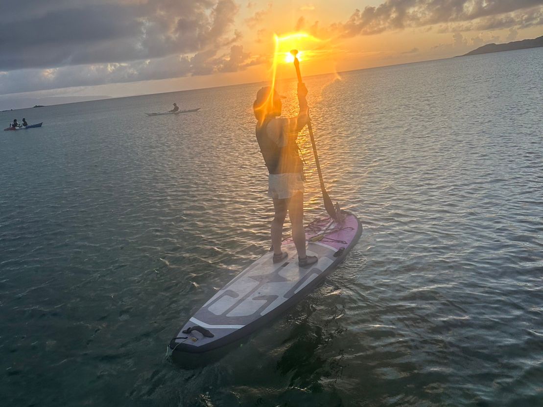 サンセット&ナイトSUPは、忘れられない体験になりました。サンセットでは、夕日が海に沈むまで自由にSUPを楽しむことができました。夕日の色が水面に映って、まるで絵画のような美しさでした。SUPに乗っていると、自分が海の一部になったような感覚になりました。夕日が沈んだ後も、空はまだオレンジ色に染まっていて、とてもロマンチックでした。