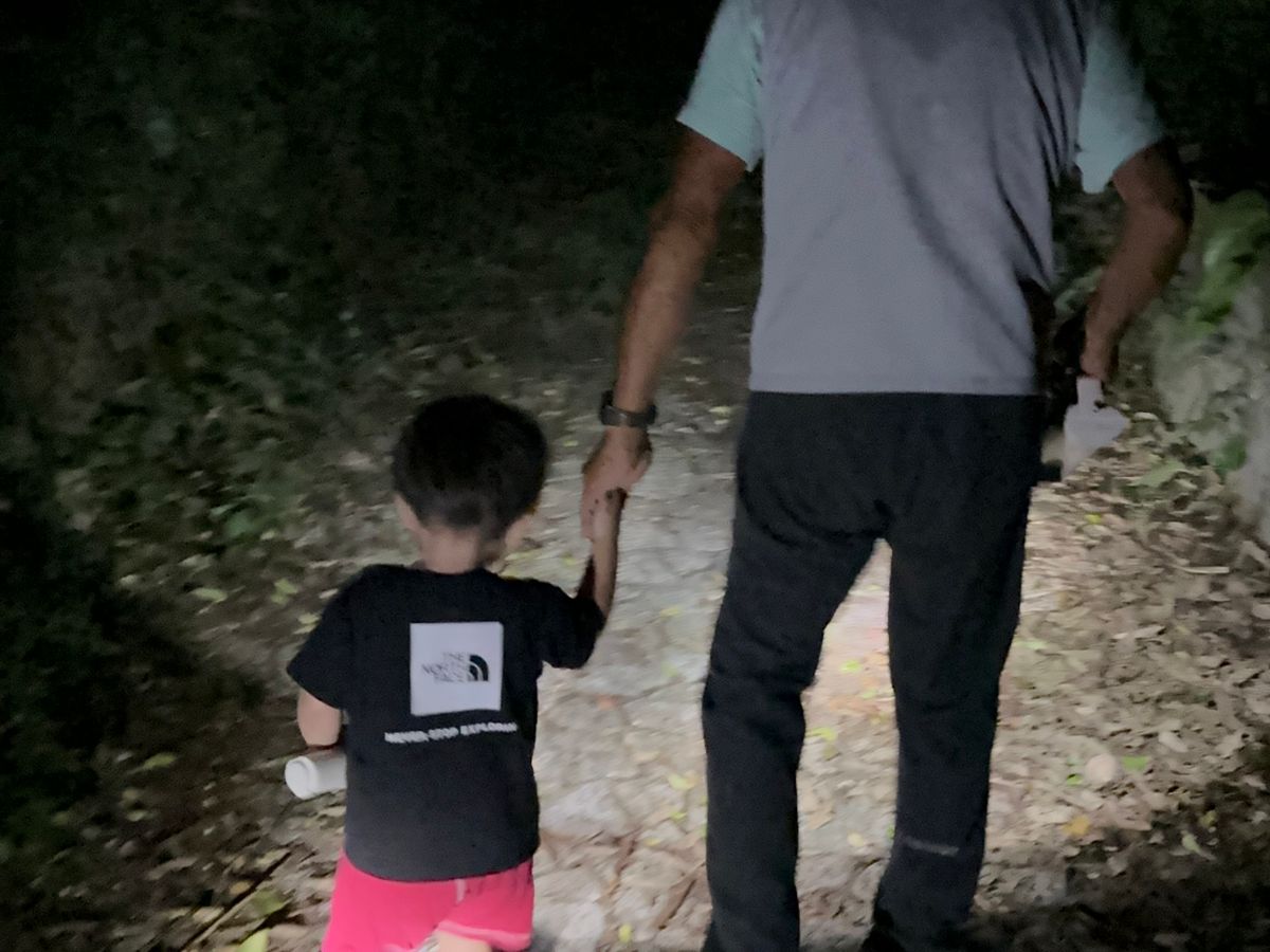 6歳の子供は大喜びでした。下の子の2歳児は暗いしずっと抱っこ覚悟でしたが、ライトがとても気に入ったようで1時間ほどのツアーを全てノリノリで歩ききり、人見知りもする子なのですがウエチさんと手を繋いでいただきながら歩いてるのにも感動しました。