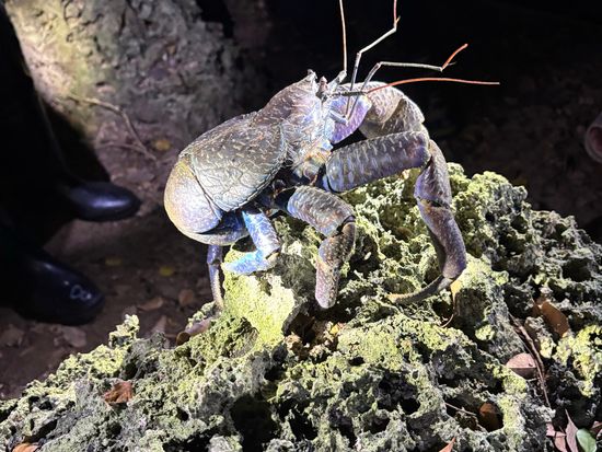ツアー中、岩場の奥にヤシガニが居たのですが、すぐに逃げてしまい、写真は諦めていました。ですがその後、ガイドの人が捕まえてくれたためじっくり観察することができました!