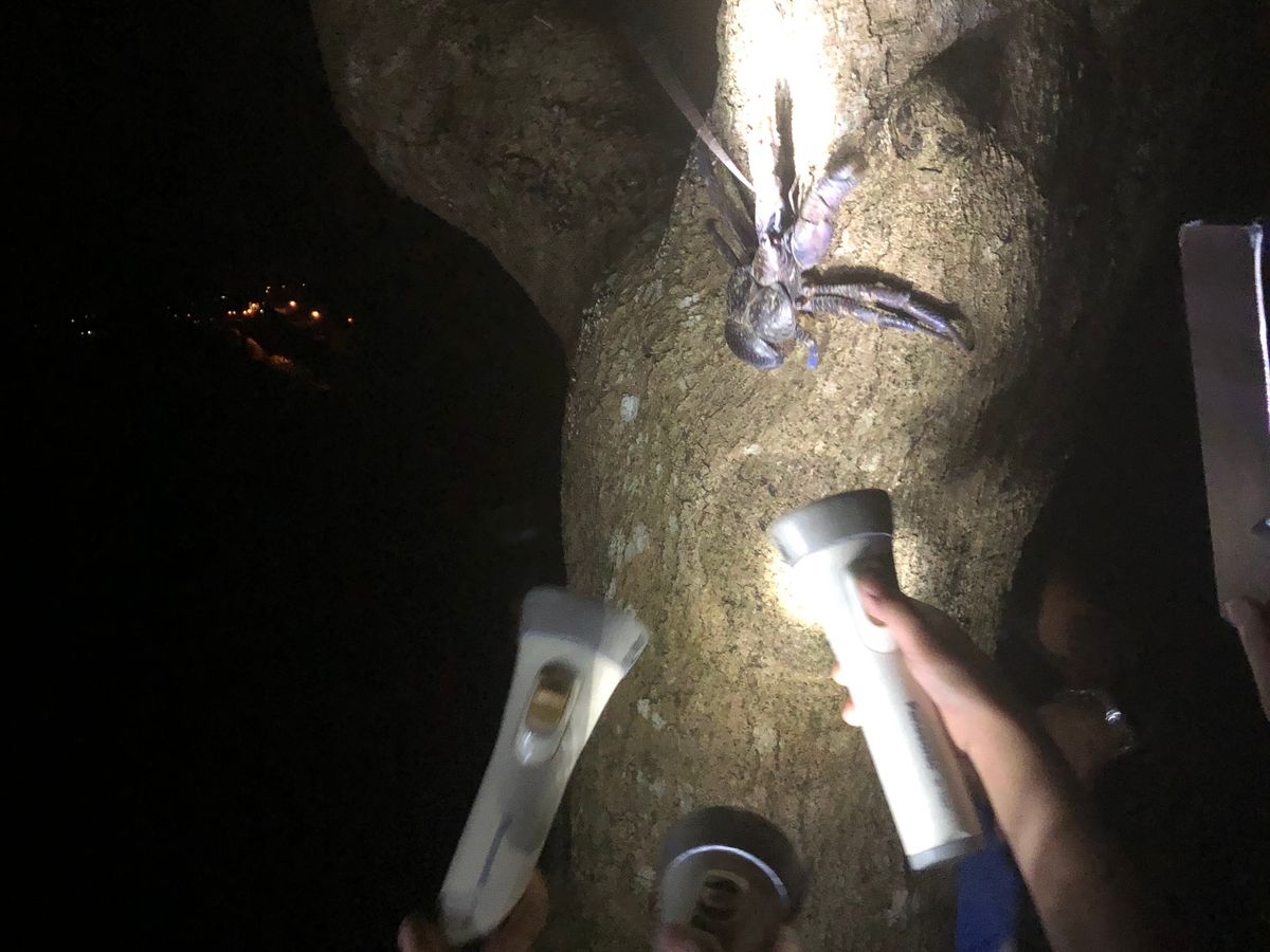 1人1本の懐中電灯を持って、沢山のヤシガニを発見でき、満点の星空を光線を使って解説していただきました。